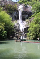 沿著石階,一個(gè)峰回路轉(zhuǎn)就到了龍吟潭邊,抬頭就會(huì)看到瀑布從90米高的懸崖上瀉入龍吟潭。站在壩上,撲面迎來一股涼爽的水汽。龍吟潭底建有水底龍宮,供人游覽,游玩龍宮出來后就坐小木船入洞游覽勝景??戳似俨嫉紫碌?/span>5個(gè)小洞,船就進(jìn)入冬暖夏涼的龍游洞,一到洞內(nèi)碼頭,就看到洞內(nèi)的巨大洞窟,不看路標(biāo)說不定還會(huì)繞暈?zāi)?,游了水簾洞,盤龍瀑就進(jìn)入臥龍?zhí)?,靠著巖壁入洞中,盤繞上有33米高的圓壁樓梯就是懸空洞,從梯頭拍洞景,往下拍像玫瑰花,向前拍像洞中長(zhǎng)廊,洞中倆旁洞室相連,有人防洞,會(huì)議廳,餐廳,廁所,廚房和洞宇文化宣傳窗。